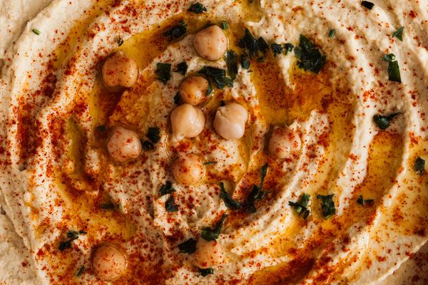 Homemade creamy humus, with and a drizzle of extra virgin olive oil
